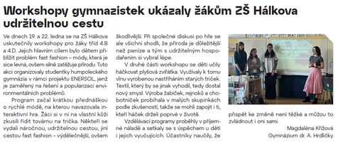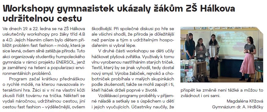V březnu vyšly v Radničních listech hned tři články našich studentů - workshop o udržitelnosti, Valentýnská oslava a lyžařské kurzy.