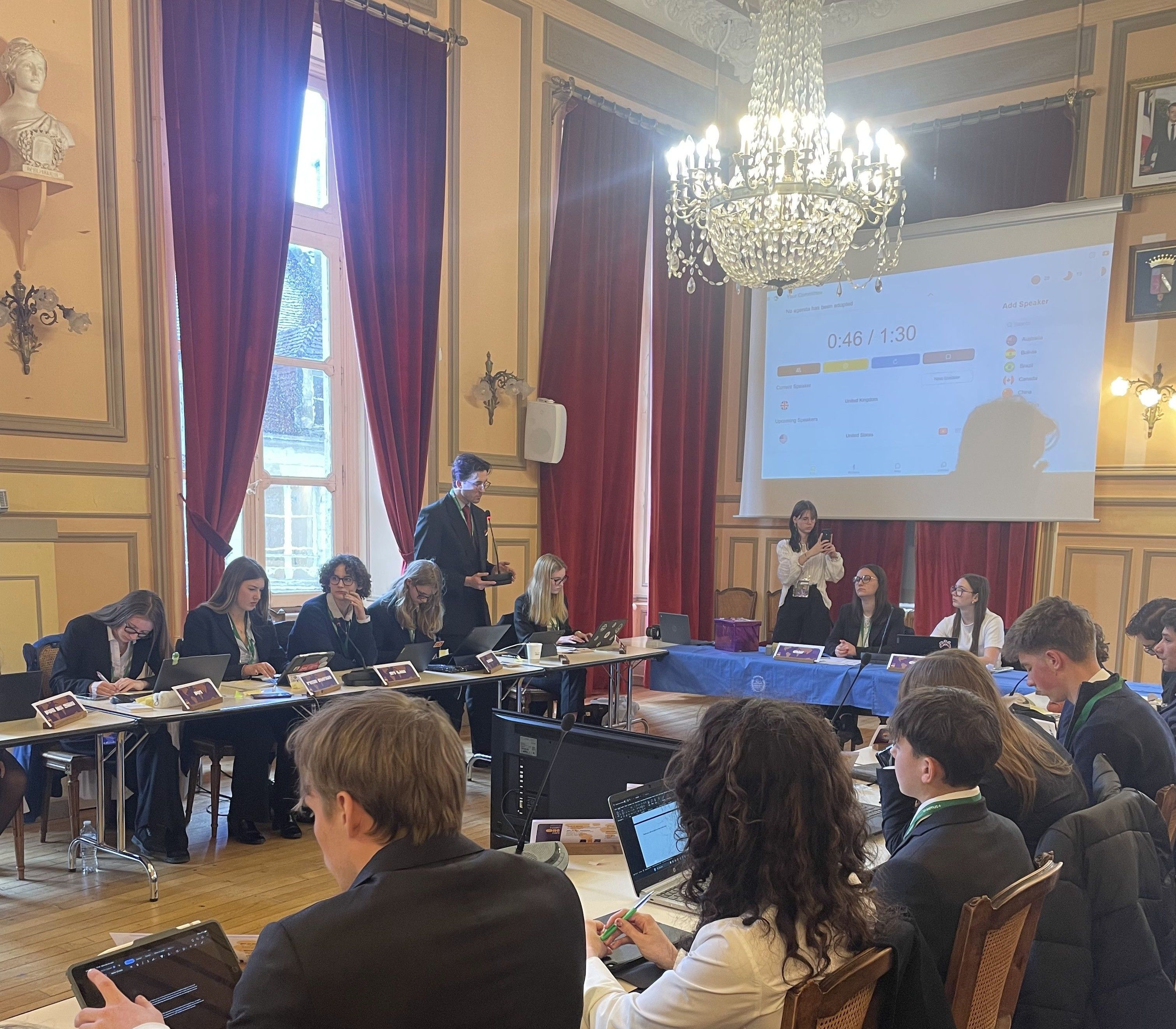 Naši studenti se již potřetí zúčastnili mezinárodní konference Model of United Nations ve francouzském Chaumont. Konference, která se konala 25. – 27. 3. 2026, se nesla v duchu konceptu „One Health“ propojujícího zdraví lidí, zvířat i životní prostředí a přilákala téměř 200 studentů z 18 zemí světa. Byla skvělou příležitostí k setkávání nejen na oficiální úrovni, ale i mimo mikrofony, v neformálních diskusích a během společně stráveného času.