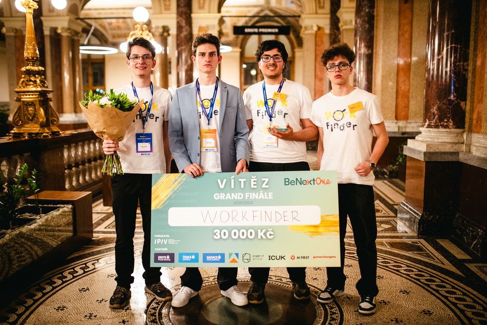 Tým studentů Gymnázia dr. A. Hrdličky v Humpolci zaznamenal výrazný úspěch na celostátní úrovni. Startup WorkFinder, vedený Jakubem Pavlasem (7.O), zvítězil ve finále akceleračního programu BeNextOne a získal titul Nejlepší studentský startup roku 2026.